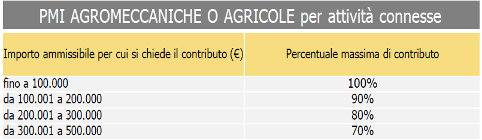 Ad esempio, una Pmi agricola guidata da un giovane che effettua una spesa di 100.000 euro potrà ricevere 60.000 euro di contributo a fondo perduto e circa 2.800 euro, in funzione delle commissioni bancarie, a copertura del finanziamento bancario.