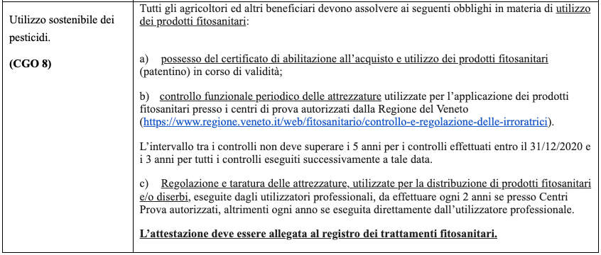 Tra gli adempimenti da rispettare si ricorda la compilazione del registro delle concimazioni e del fosforo e la compilazione del registro dei trattamenti fitosanitari.
