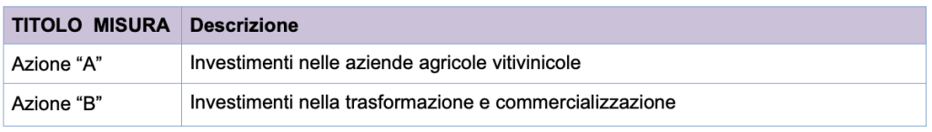 Azione “A” - Investimenti nelle aziende agricole vitivinicole
