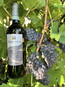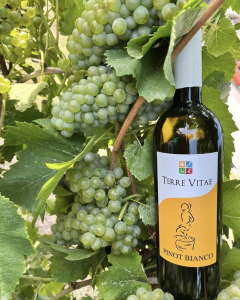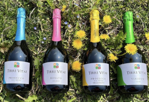 Alex per identificare l’azienda con il territorio ed il valore del lavoro del vignaiolo cambia denominazione e sceglie il nome Terre Vitae, che vuole ricordare il sacrificio e la passione della lavorazione della terra rispettando e valorizzando gli sforzi dei suoi predecessori, portando un po’ di innovazione e conoscenza nell’ambito enologico. Da questo derivano i quattro simboli del nuovo stemma: il Leone simbolo del Veneto, il Fiume Piave che bagna le nostre terre, l’Aratro segno delle tradizioni agricole, il Bicchiere con lo stelo e le radici della vitis vinifera. il nome terre vitae riporta al significato latino vita dalla terra.